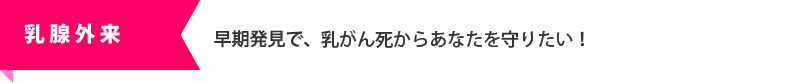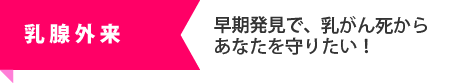 今のところ、乳がんの予防法はありませんので、当院では早期発見に全力を挙げ、乳がんによる死亡率ゼロを目指して診療に取り組んでいます。